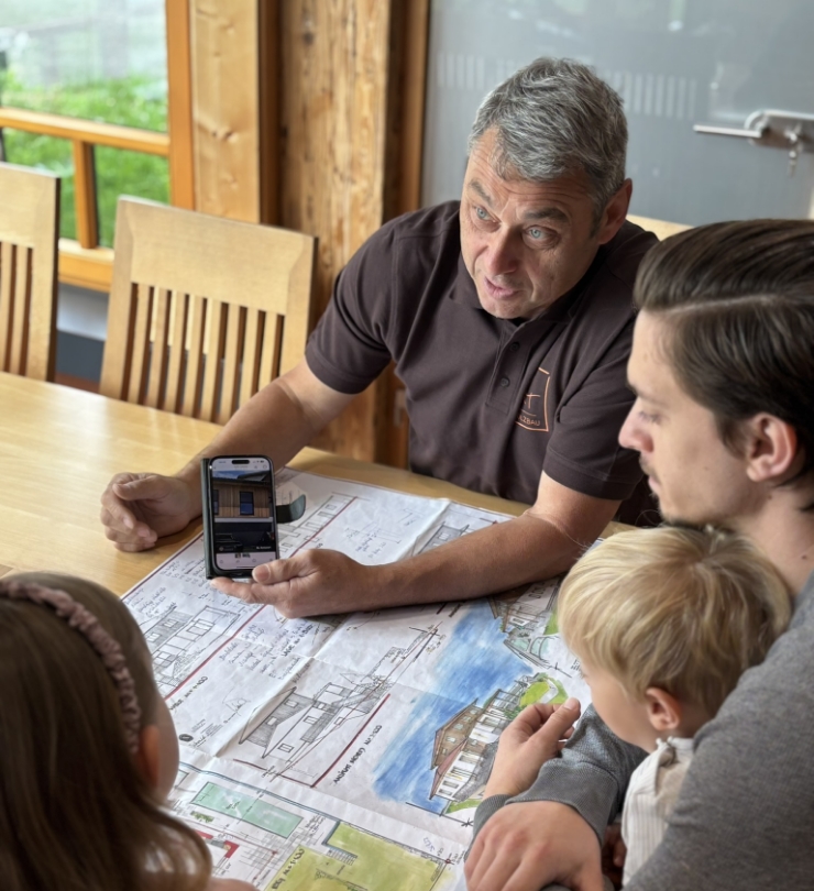 Kundennähe ist uns sehr wichtig und deshalb beginnt ein Projektstart bei m4 Holzbau mit einer Betriebsführung. Durch diese wertvollen Einblicke wird nicht nur eine persönliche Verbindung zwischen Bauherren und Bauunternehmen geschaffen, sondern auch der Bezug zum eigenen Bauwerk.