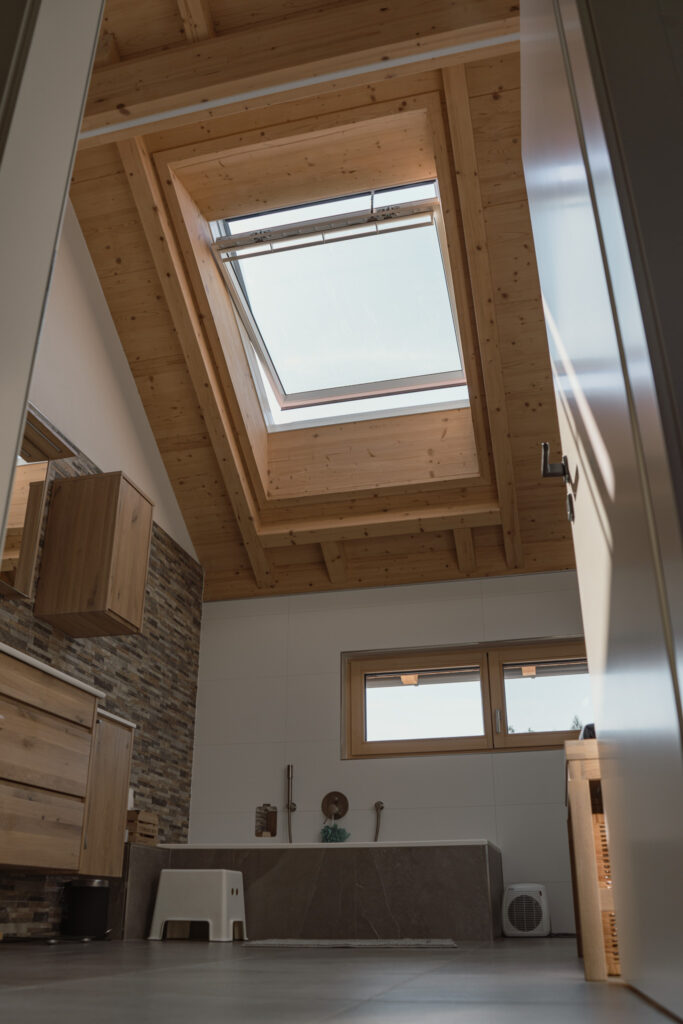 Holzbau schont nicht nur globale Ressourcen, sondern besitzt auch besonders wertvolle Qualitäten. Die Eigenschaft des Holzes, überschüssige Feuchtigkeit aus der Luft aufzunehmen und bei Bedarf wieder abzugeben, trägt bedeutend zum Raumklima im Wohnbereich bei. Die dadurch freiwerdenden ätherischen Duftstoffe schaffen eine wohltuende Atmosphäre und sind gesund für unsere Atemwege.